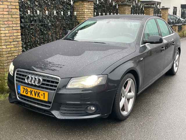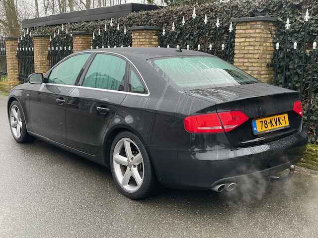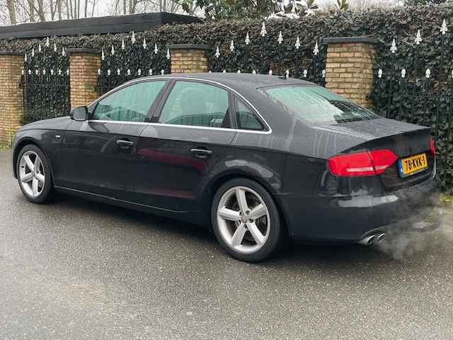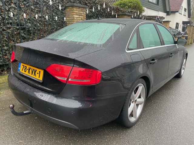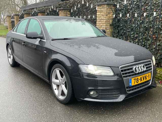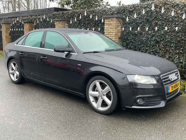 Zeer mooie en goed onderhouden Audi A-4 2.0 TFSI S-Edition(4-deurs/ sedan), bj.2010, zwart metallic van kleur met half leder zwart interieur,