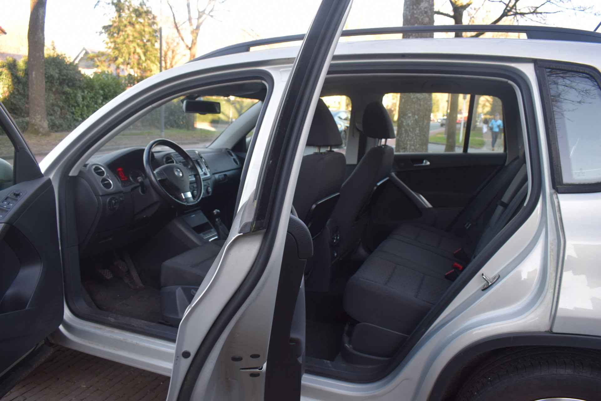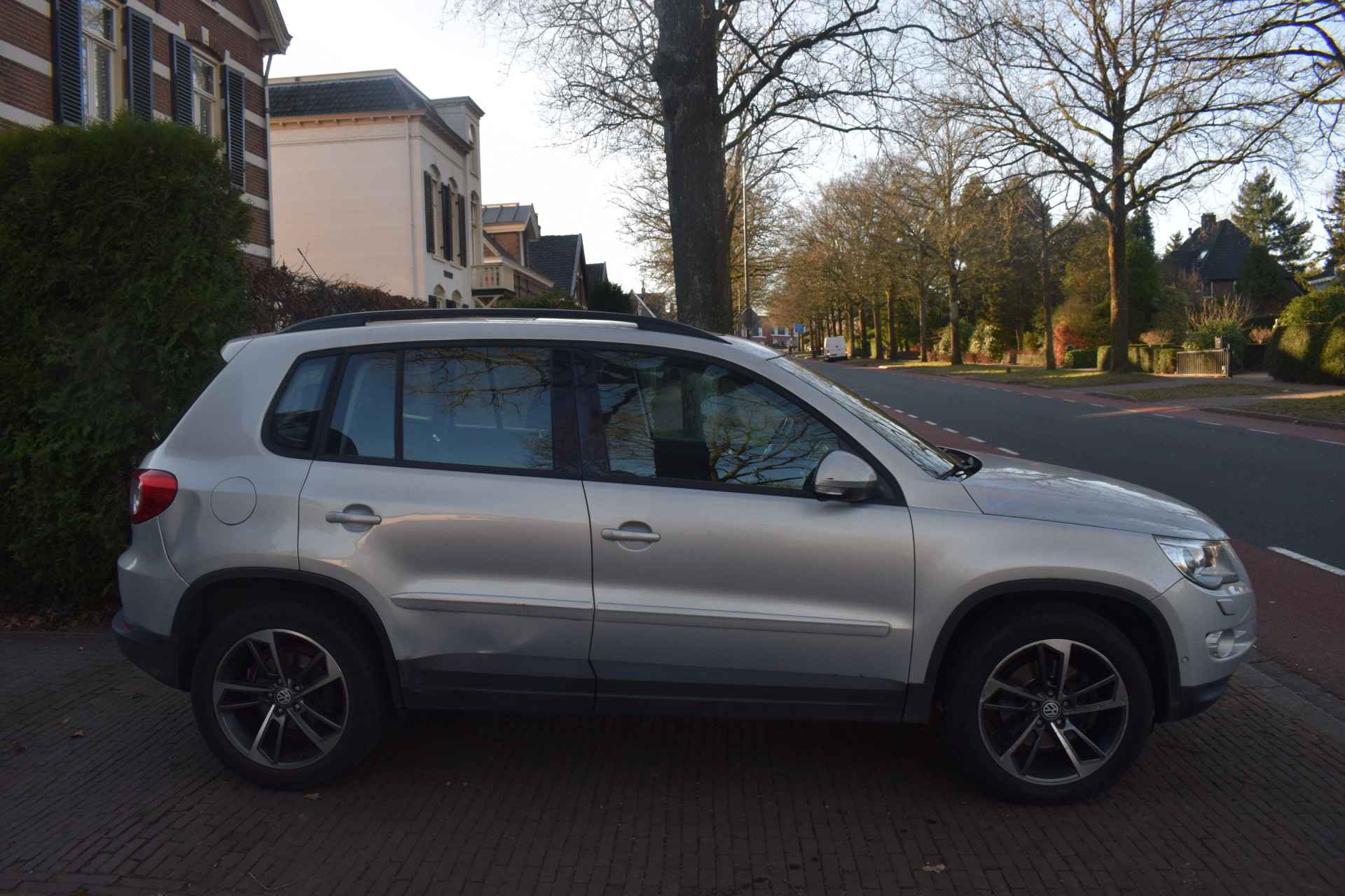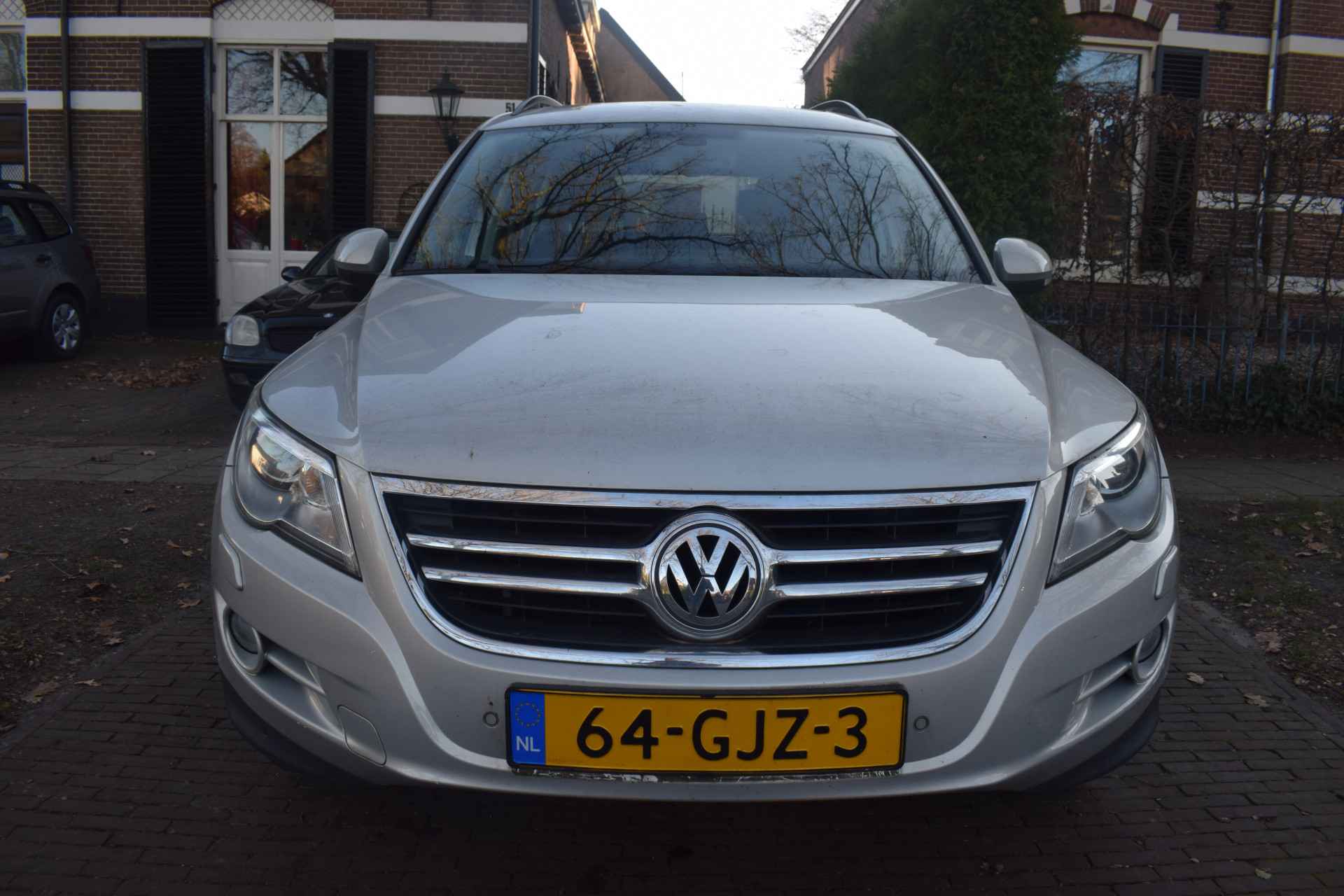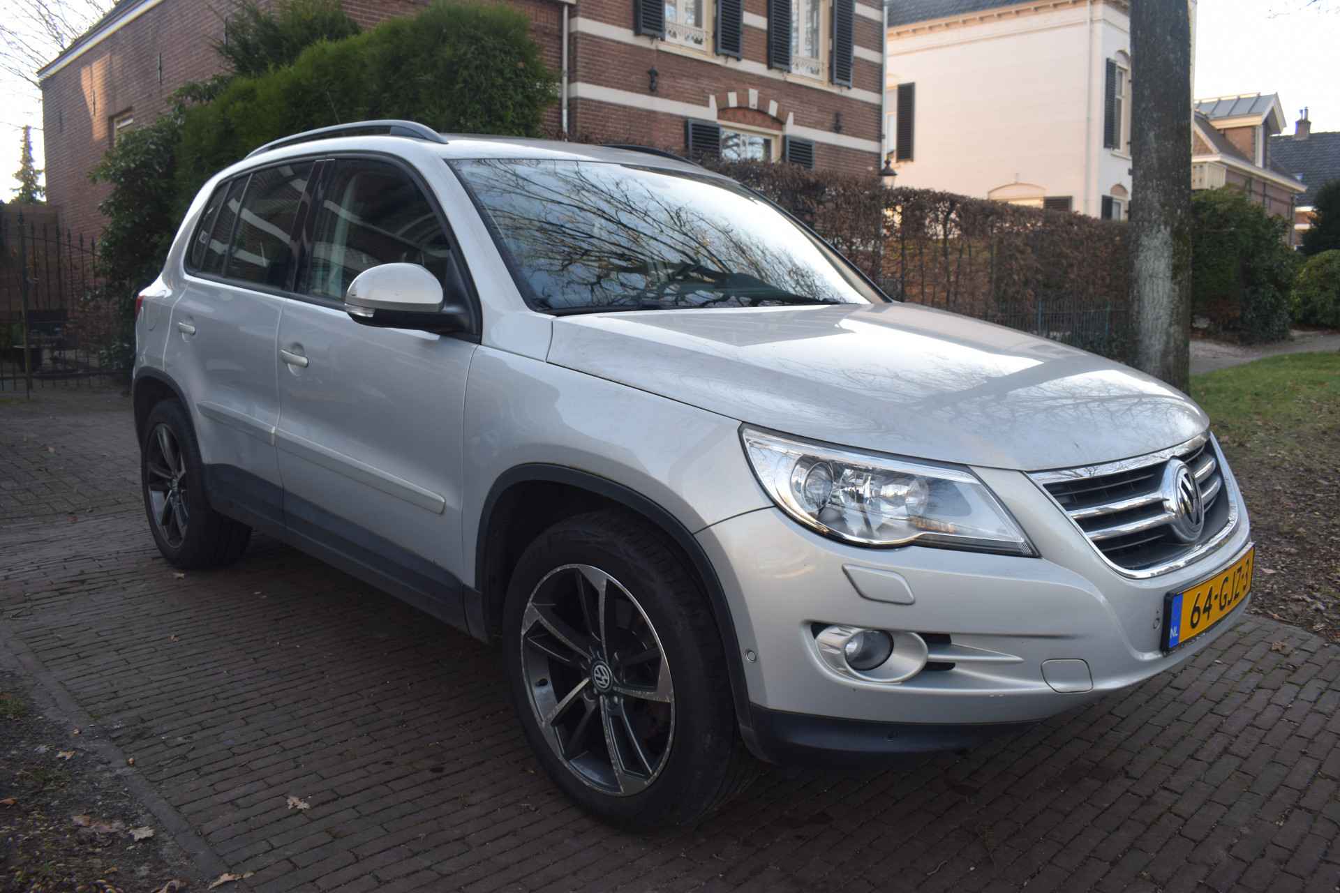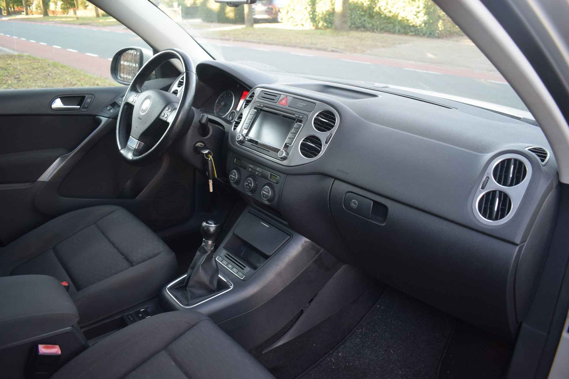 Een Volkswagen pik je er altijd uit, want je herkent hem aan zijn dynamische styling, aan zijn degelijke bouw en aan zijn sportieve lijnen. Dat geldt ook voor deze Tiguan, die met zijn eigentijdse design helemaal past in het moderne straatbeeld. Het zijn de degelijkheid van de constructie en de doordachtheid van het ontwerp die ervoor zorgen dat een Volkswagen jarenlang begeerlijk blijft. Zoals deze Tiguan, bijvoorbeeld. De krachtige benzinemotor van deze auto is gekoppeld aan een handgeschakelde zesversnellingsbak. Het daglicht valt in overvloed via het elektrisch bediende panoramadak op het fraaie interieur. Xenonverlichting staat borg voor helderwit licht en een krachtige lichtbundel. Natuurlijk behoren 16 inch lichtmetalen velgen, warmtewerend glas, in hoogte verstelbare voorstoelen, verstelbare lendensteunen en snelheidsafhankelijke stuurbekrachtiging ook tot de uitrusting van deze complete auto.