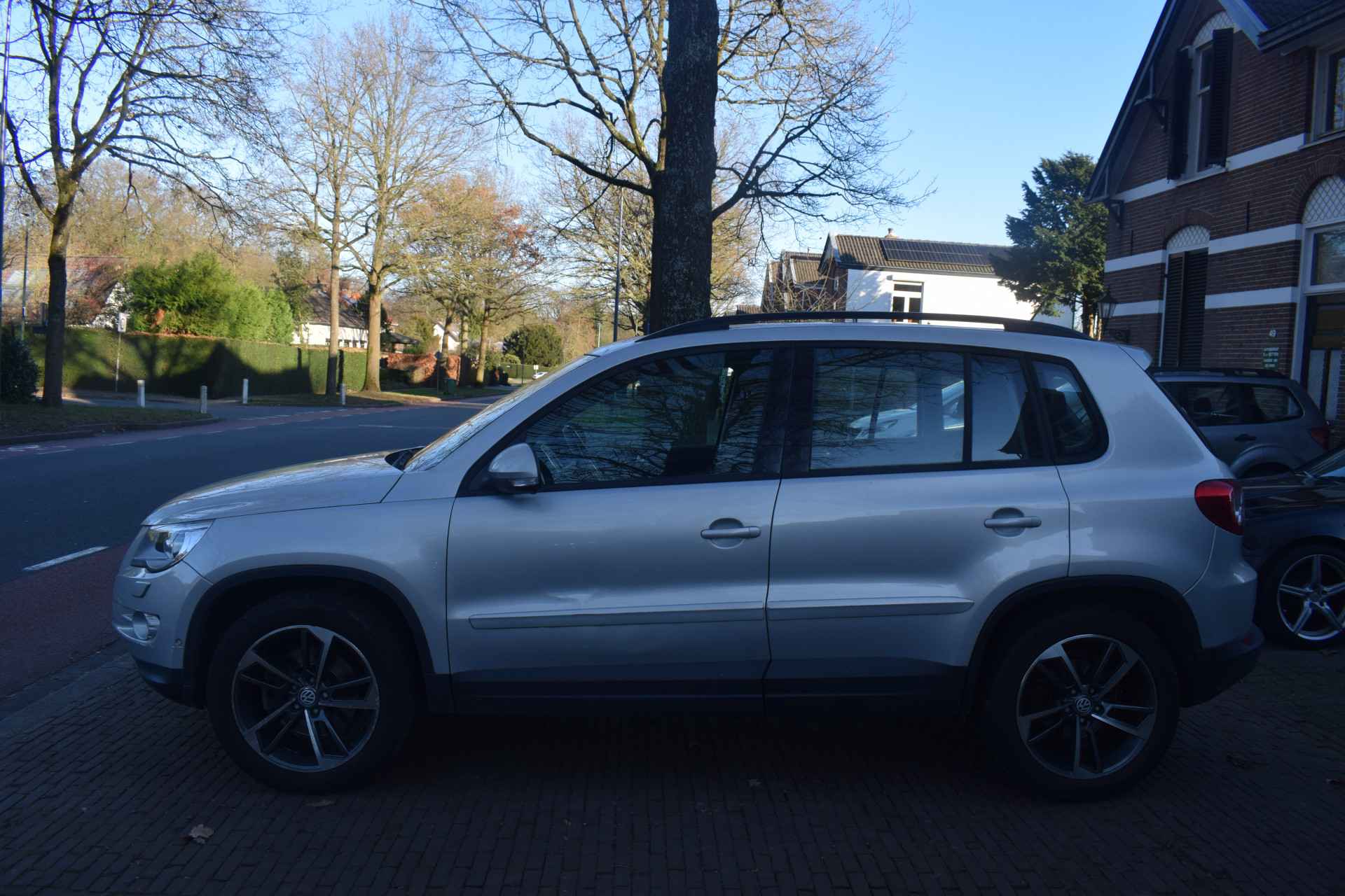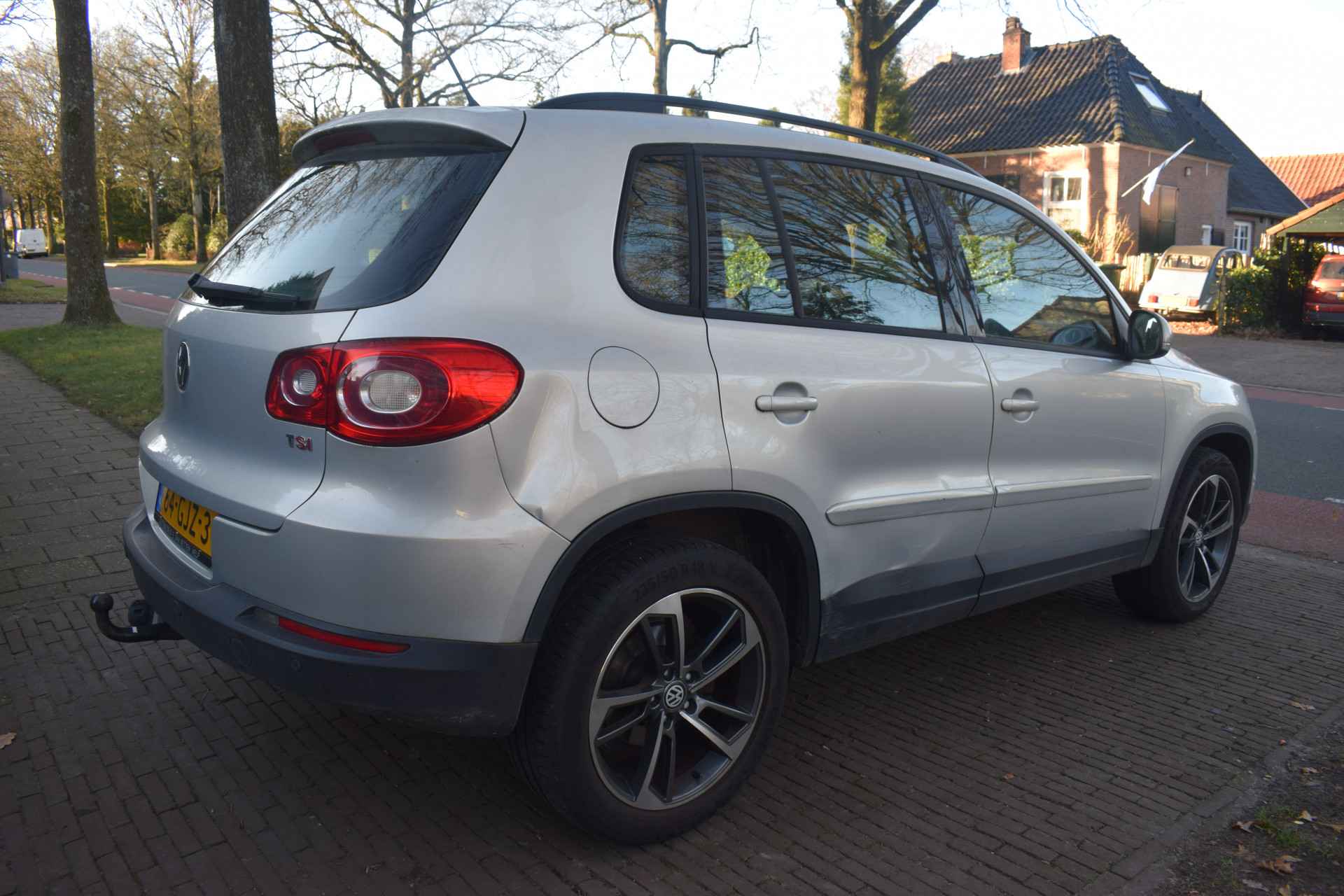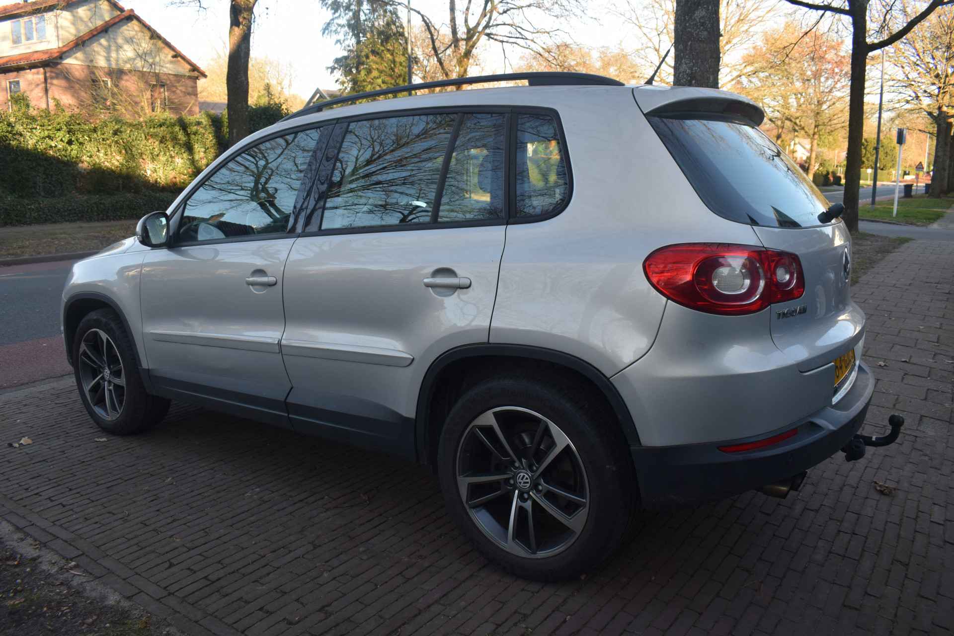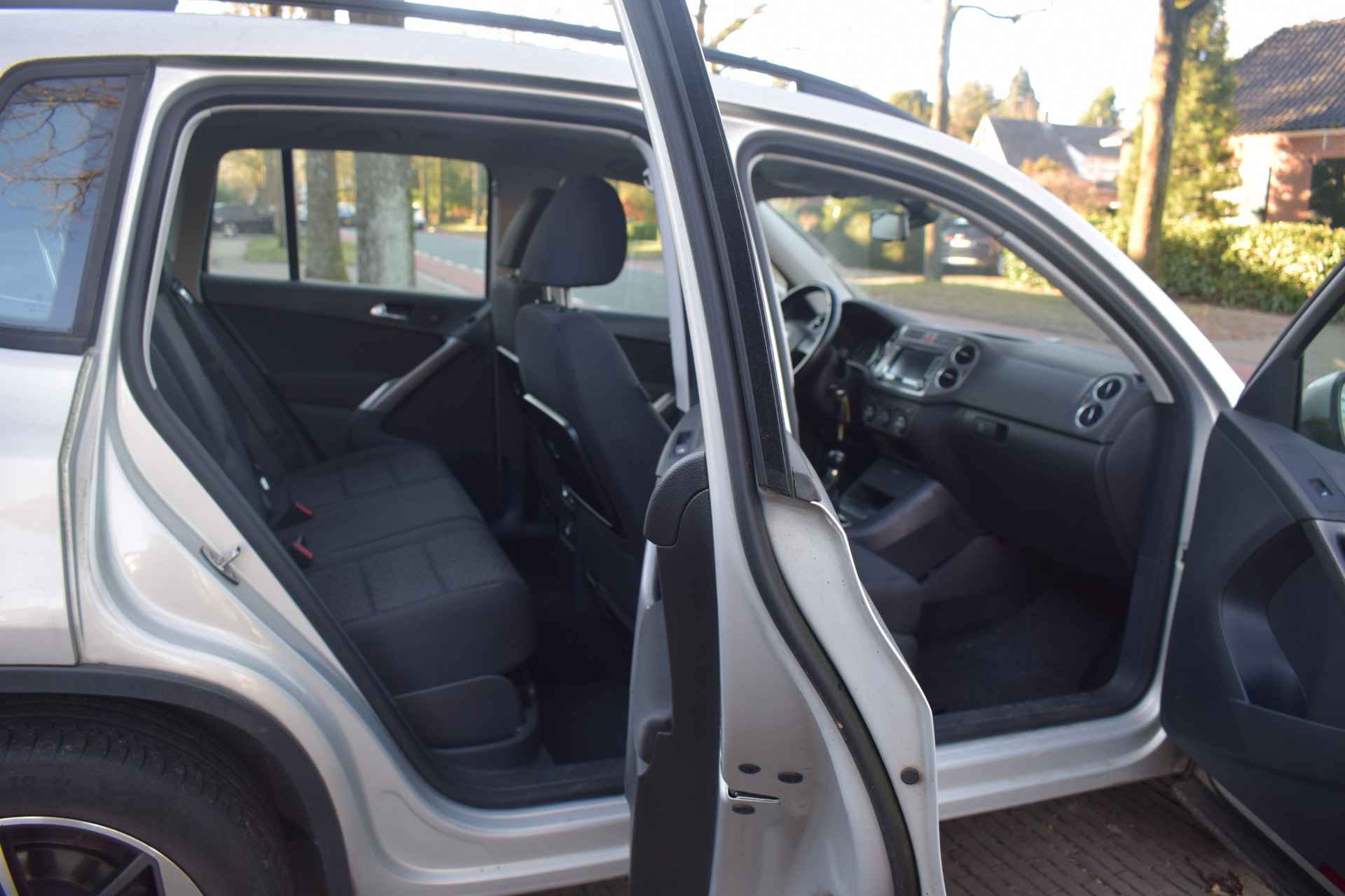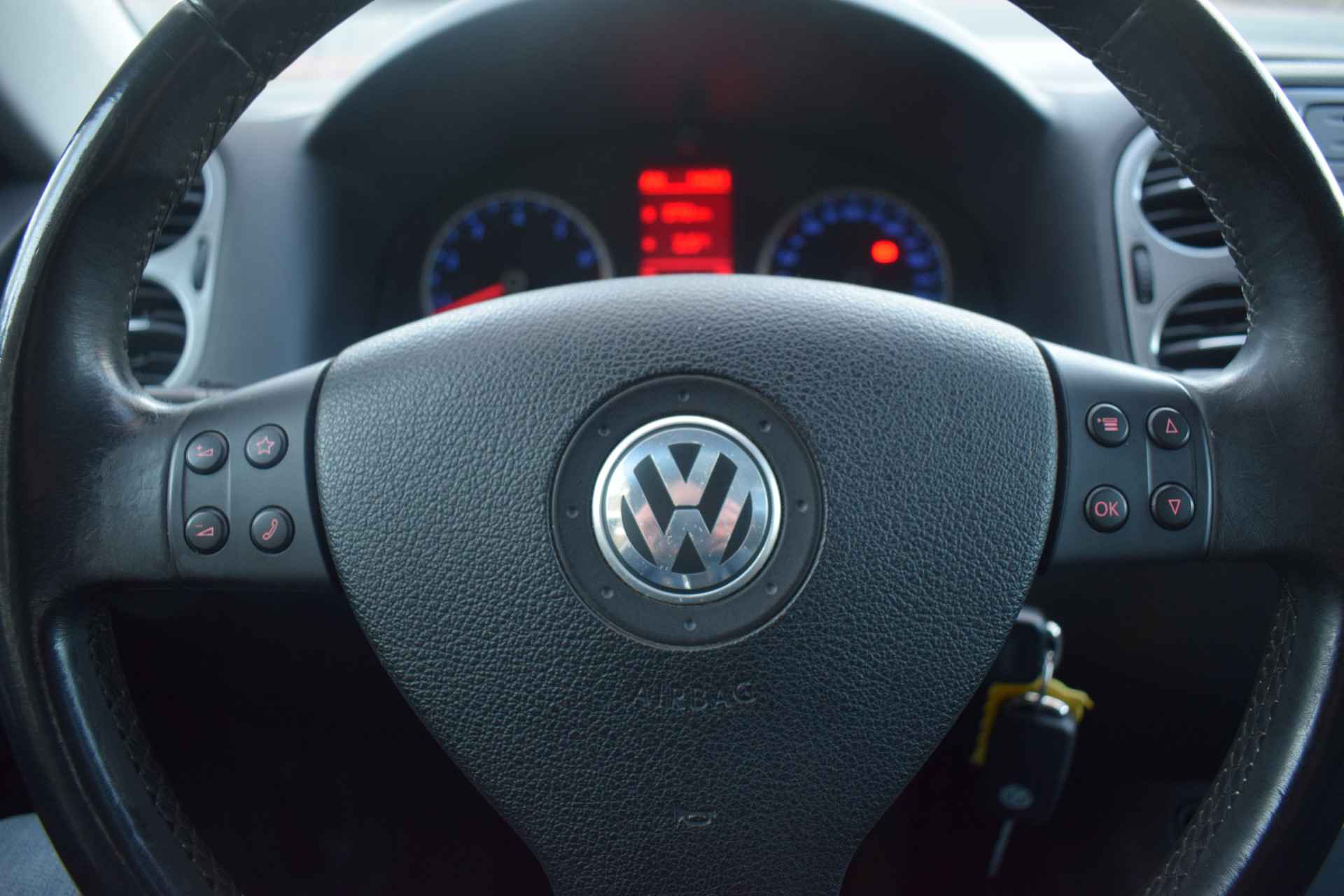 Een Volkswagen pik je er altijd uit, want je herkent hem aan zijn dynamische styling, aan zijn degelijke bouw en aan zijn sportieve lijnen. Dat geldt ook voor deze Tiguan, die met zijn eigentijdse design helemaal past in het moderne straatbeeld. Het zijn de degelijkheid van de constructie en de doordachtheid van het ontwerp die ervoor zorgen dat een Volkswagen jarenlang begeerlijk blijft. Zoals deze Tiguan, bijvoorbeeld. De krachtige benzinemotor van deze auto is gekoppeld aan een handgeschakelde zesversnellingsbak. Het daglicht valt in overvloed via het elektrisch bediende panoramadak op het fraaie interieur. Xenonverlichting staat borg voor helderwit licht en een krachtige lichtbundel. Natuurlijk behoren 16 inch lichtmetalen velgen, warmtewerend glas, in hoogte verstelbare voorstoelen, verstelbare lendensteunen en snelheidsafhankelijke stuurbekrachtiging ook tot de uitrusting van deze complete auto.