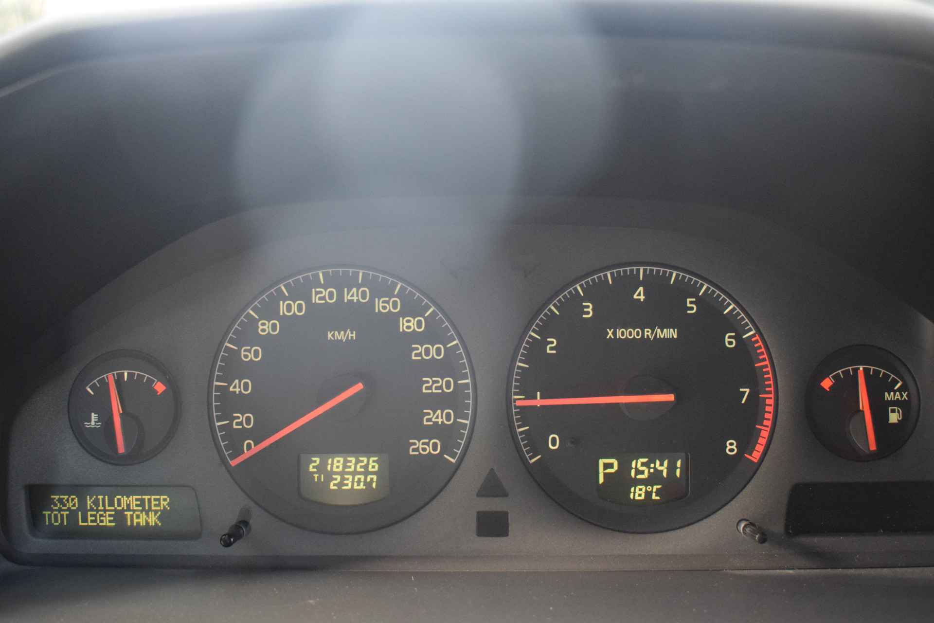 Met de electronic climate control selecteert u de gewenste temperatuur. Het systeem doet de rest. De ene neerslag is de andere niet. Dankzij de regensensor krijgt u automatisch precies zoveel wisbewegingen die het zicht nodig heeft. De voordelen van de aanwezige cruise control hoeven we niet uit te leggen. Een mooie, constante snelheid - niet te snel, niet te langzaam. Precies goed. Ook is de Volvo uitgerust met: automatisch dimmende binnenspiegel, lederen stuur, centrale deurvergrendeling met afstandsbediening, boordcomputer en lederen versnellingspook.